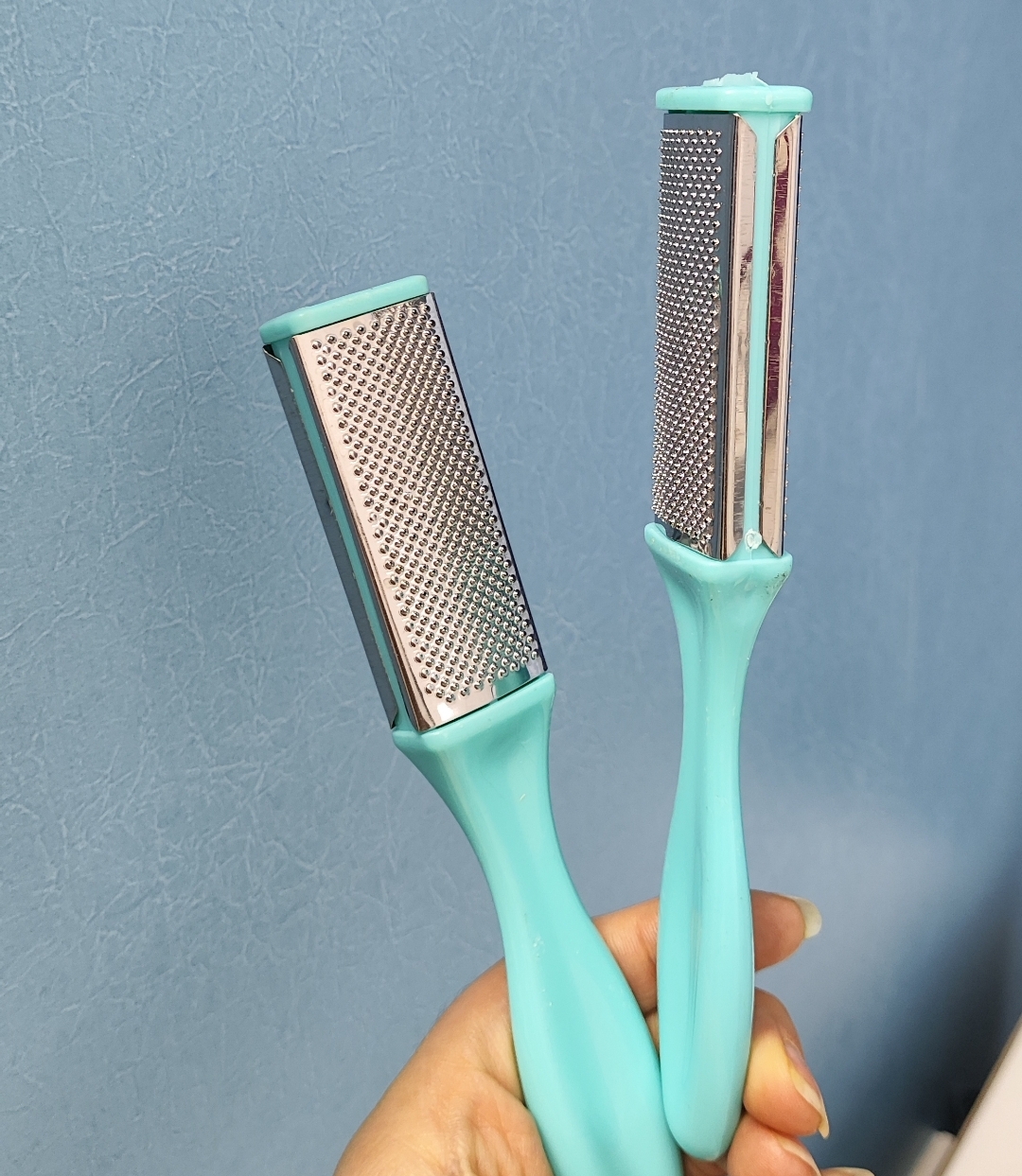 رنده کف پا را داخل حمام ک پاها کامل خیس خورده کف پا و روی قوزک پا بکشید بدون هیچ درد و ناراحتی تمام پوسته های اضافی و ترک ها را برمیدارد و پوست صاف و یکدست و نرم به شما میدهد ✌🏻😍